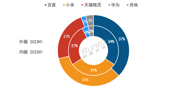 也必须点赞一下百度和小米的市场表现。2023年第二季度,百度在线个百分点;小米线个百分点。百度和小米分别在线下和线上市场保持份额增长,此消彼长之下,显然也是凭实力抢占着同行友商的市场份额,这里受伤害的包括天猫精灵和华为。